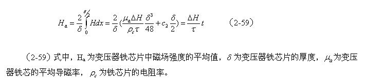 由于在變壓器鐵芯片內(nèi),截面磁場強(qiáng)度的平均值Ha,在任一時間內(nèi)都必須等于電磁感應(yīng)所要求的值,即滿足(2-45)式的要求,因此對應(yīng)圖2-18對(2-58)式求平均值得: