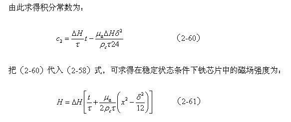 當(dāng)x = 0時,正好位于鐵芯片的中心,此處的磁場強(qiáng)度最小,即此點(diǎn)的導(dǎo)數(shù)值等于0,由此求得積分常數(shù)c1= 0。