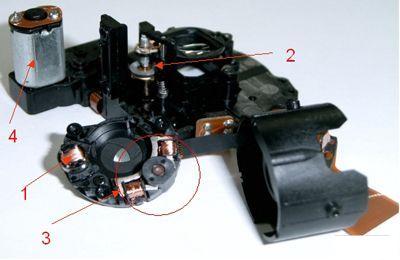 圖1:DSC使用的所有馬達(dá),其中1為用于快門的直流致動器,2為用于自動調(diào)焦的步進(jìn)
