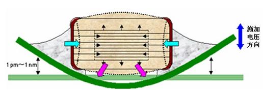 圖2:施加電壓時的壓電效應引起電容變形
