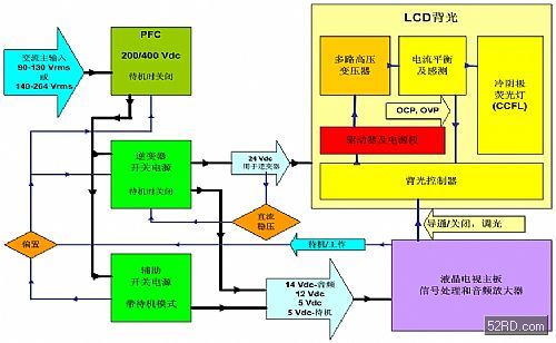 圖1:采用標準直流24V逆變器的傳統(tǒng)液晶電視開關(guān)電源框圖。