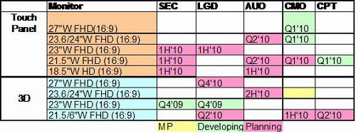 除了奇美以外,Samsung、LGD與AUO也都在開發(fā)具3D顯示與觸控功能顯示器面板,估計2010年都將有新產(chǎn)品量產(chǎn)。從表二可以更加清楚了解主要廠商開發(fā)具觸控功能顯示器面板時間表。