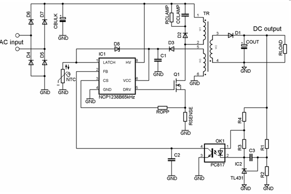 圖2:NCP1238典型應(yīng)用電路圖。