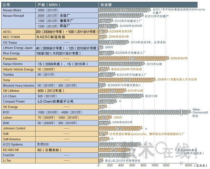 單單是NikkeiElectronics所調(diào)查的投資就已經(jīng)超過1萬億日元了。鋰離子充電電池的帶動應(yīng)用即將從手機轉(zhuǎn)向電動車。