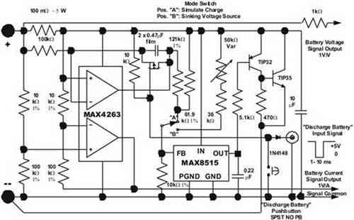 用恒流源對電池充電時電壓將不斷變化,以一定的正斜率上升。這是由于放電和其它電池內(nèi)部化學(xué)變化過程中,電池正極周圍累積的極化離子逐漸減少。因此,充電器的工作點取決于電池連接時間的長短,以及電池的工作歷史。用大多數(shù)電子實驗室能夠找到的通用器件構(gòu)建負(fù)載,以模擬這一復(fù)雜負(fù)載的模型很困難。