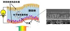 瀨和表示,該太陽(yáng)能電池的基本發(fā)電原理為色素增感型。只是(1)電解質(zhì)采用固體而非液體;(2)采用樹狀電極+多孔狀鍍金膜代替ITO等透明電極,可實(shí)現(xiàn)基于等離子共振的增感效應(yīng),這兩點(diǎn)與之前不同。