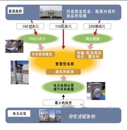 美國在構(gòu)建智能電網(wǎng)的同時,還將一舉建設充電基礎設施。許多企業(yè)為獲得這一市場而參與了競爭,他們的目標是,以電力資訊為核心推出新的服務,以成為汽車和家電產(chǎn)業(yè)的主角為目標。