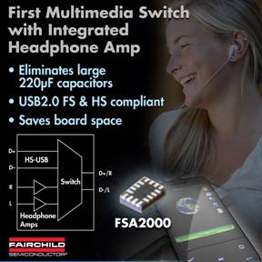 飛兆半導體公司(Fairchild Semiconductor)專注開發(fā)提升用戶滿意度以及使產品取得市場成功的模擬和功率功能,為手機設計人員提供一款集成有無電容耳機音頻放大器的自動選擇高速USB開關FSA2000,這是業(yè)界首款同類型集成式USB開關器件,而且能夠減少元件數(shù)量、電路板占用空間并降低材料清單(BOM)成本。