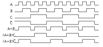 由14級串行二進制計數(shù)/分配器CD4020B構成分頻電路,分頻信號來自SG3525A的振蕩器輸出端引腳4。圖4中的A、B、C分別代表振蕩器脈沖經(jīng)8、9、10級分頻后的波形,其頻率分別為fA=fOSC/28,fB="fOSC/29",fC="fOSC/210"。分相電路由單片兩輸入端四與非門CD4011BC及外圍器件組成,將信號ABC邏輯組合成逆變橋所需要的驅動脈沖(A+B)C與(A+B)C信號。該驅動信號具有共同死區(qū),信號頻率約為50Hz。