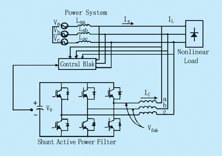 在配電系統(tǒng)中,傳統(tǒng)的諧波抑制和無功補(bǔ)償方法是將無源電力濾波器與需補(bǔ)償?shù)姆蔷€性負(fù)荷并聯(lián),為諧波提供一個低阻通路的同時,也提供負(fù)載所需的無功功率,這是最常見和實用的方法。該裝置利用電感和電容器貯能元件。根據(jù)諧振原理,通過濾波電路對需要消除的高次諧波進(jìn)行調(diào)諧,使之發(fā)生諧振。以便其在諧振時得到阻抗最小的特性,有效消除指定次數(shù)的諧波,并在諧波源附件就地吸收諧波電流,從而不使其注入電網(wǎng)中去。該裝置的優(yōu)點是投資少、效率高、結(jié)構(gòu)簡單。運(yùn)行可靠及維護(hù)方便,運(yùn)行費(fèi)用也低,不但起到濾波作用,還能進(jìn)行無功補(bǔ)償。因此,無源濾波器是目前廣泛采用的抑制諧波及無功補(bǔ)償?shù)闹匾侄?。但該方法的補(bǔ)償特性受電網(wǎng)阻抗、頻率和運(yùn)行工況的影響,只能起到對某幾次固定頻率諧波的抑制效果,而很可能對其它次諧波有放大作用,使濾波器過載甚至燒毀。另外,LC濾波電路會因系統(tǒng)阻抗參數(shù)變化而產(chǎn)生與系統(tǒng)并聯(lián)諧振問題,影響和后果嚴(yán)重。