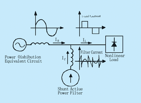 APF是一種新型可動態(tài)抑制諧波的PE裝置。其濾波方式為:先從補(bǔ)償對象中檢測出諧波電流,再利用可控的功率半導(dǎo)體器件(補(bǔ)償裝置)向電網(wǎng)注入與諧波源諧波分量(I或U)幅值相等、相位相反的諧波分量(I或U),使電源的總諧波為零,達(dá)到實時補(bǔ)償諧波的目的。經(jīng)經(jīng)驗證明,APF是抑制諧波和補(bǔ)償無功的理想和靈活的可行方案,下面予以重點介紹。