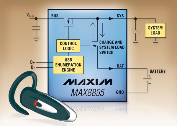 Maxim推出線性電池充電器MAX8895,器件適用于符合USB電池充電規(guī)范(1.1版本)的Bluetooth®耳機和便攜設(shè)備。MAX8895獨特地集成了自動適配器檢測功能,可分辨USB設(shè)備、USB充電器和專用充電器。器件還具有USB枚舉功能,可自動與USB主機進行交互,無需處理器干預(yù)即可優(yōu)化充電電流。該功能無需使用單獨的微控制器和系統(tǒng)軟件,因而可提供業(yè)內(nèi)僅有的單機運行充電方案。