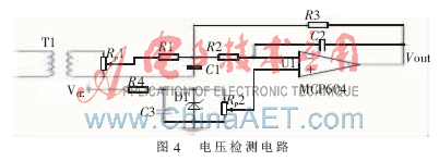電壓檢測主要用來實(shí)時(shí)檢測常用和備用電源的電壓。PIC16F884單片機(jī)有14通道的10位A/D轉(zhuǎn)換器,可以滿足電壓采樣的精度。由于PIC16F884單片機(jī)只能對0~5V間的單極性電壓進(jìn)行檢測,故需要對交流電壓進(jìn)行提升使它成為單極性的電壓信號。電壓檢測電路如圖4所示[1]。