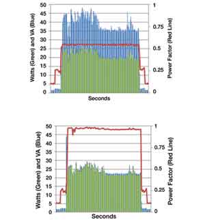圖1描述了一臺使用兩種不同電源適配器供電的筆記本電腦的功率消耗。即使實際負(fù)載一樣,從電力線上供應(yīng)的功率也有很大的不同。這些有價值的信息現(xiàn)在都可以非常容易地獲得。統(tǒng)計的結(jié)果可以用于調(diào)整設(shè)備的工作行為。在電壓或線路頻率上的微小降落都有可能預(yù)示著某種供電故障,都會使設(shè)備進(jìn)入保護(hù)模式。