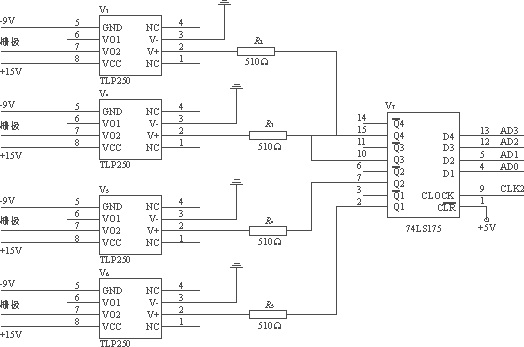 由于在本設計中,采用單片機作為測量系統(tǒng)的核心,因此,控制電路的核心也采用單片機,為了節(jié)約單片機的IO口,采用一片74LS175作為控制信號的鎖存器。驅(qū)動電路與控制電路的接口電路如圖6所示。