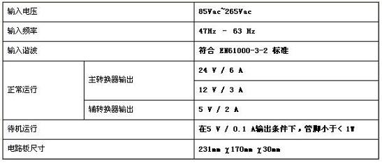 其工作原理是,如果反饋信號(hào)水平降至突發(fā)進(jìn)入閾值(FB1)以下,并持續(xù)一段時(shí)間,控制IC進(jìn)入主動(dòng)突發(fā)模式。這時(shí)開(kāi)關(guān)脈沖停止,輸出電壓則會(huì)降低,然后反饋電壓升高。當(dāng)它升到突發(fā)開(kāi)始水平(FB3),開(kāi)關(guān)脈沖恢復(fù)。在處于突發(fā)模式期間,輸出會(huì)升高,反饋電壓開(kāi)始降低。當(dāng)它降到突發(fā)結(jié)束水平(FB2),開(kāi)關(guān)脈沖再次停止。這種突發(fā)交替性結(jié)束開(kāi)始,構(gòu)成主動(dòng)突發(fā)模式。如果負(fù)載由輕載提高至重載,反饋電壓值將開(kāi)始提高。如果反饋電壓水平超過(guò)突發(fā)退出閾值(FB4),IC將離開(kāi)主動(dòng)突發(fā)模式。屏蔽時(shí)間和其他2個(gè)閾值(FB1和FB4)可有效降低錯(cuò)誤觸發(fā)突發(fā)模式的幾率。最后,如果IC進(jìn)入主動(dòng)突發(fā)模式,最大峰值電流閾值將降至原始值的三分之一或四分之一。這可大大降低變壓器電流噪音。除了待機(jī)轉(zhuǎn)換效率,還可降低輸出電壓、主總線和輸入電壓感測(cè)功率損耗。例如,在主功率級(jí)的輸入電壓采樣部分采用4MΩ電阻分壓器。系統(tǒng)性能表1推薦解決方案的技術(shù)規(guī)格