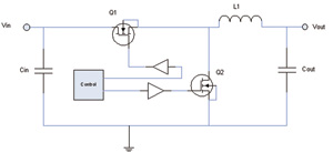 盡管本文所討論的原理適用于廣泛的電源設(shè)計,但我們在此只關(guān)注直流到直流的轉(zhuǎn)換器,因為它的應(yīng)用相當廣泛,幾乎每一位硬件工程師都會接觸到與它相關(guān)的工作,說不定什么時候就必須設(shè)計一個電源轉(zhuǎn)換器。本文中我們將考慮與低電磁干擾設(shè)計相關(guān)的兩種常見的折中方案;熱性能、電磁干擾以及與PCB布局和電磁干擾相關(guān)的方案尺寸等。文中我們將使用一個簡單的降壓轉(zhuǎn)換器做例子,如圖1所示。