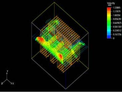 圖3 強(qiáng)迫對(duì)流條件下功率管散熱的風(fēng)速云圖