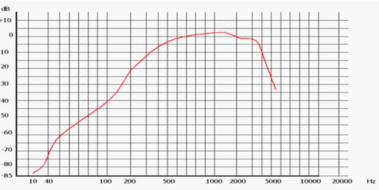 依據(jù)ITU推薦,電話衡重(加權(quán))雜音是以800Hz雜音電壓為標(biāo)準(zhǔn),其它頻率雜音電壓的響應(yīng)強(qiáng)度,用等效雜音系數(shù)表示,表二中給出了國(guó)際電聯(lián)ITU-T建議O.41(藍(lán)皮書卷IV.4O系列建議)的電話衡重雜音(噪聲計(jì)加權(quán))的數(shù)據(jù),反映為圖形曲線如圖一所示。