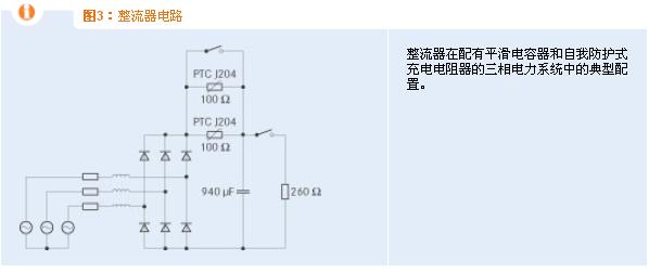 相比之下,如果將固定電阻器用作充電電流限制器,上述故障將導(dǎo)致電阻器產(chǎn)生相當(dāng)高的功率耗損,這會(huì)要求元件要有一定大的尺寸,這很不經(jīng)濟(jì)。以下特殊實(shí)例(見(jiàn)圖3)可清楚說(shuō)明這一功能原理。