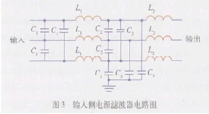 (2)輸入側(cè)電源濾波器參數(shù)圖3 為常用輸入側(cè)電源濾波器的電路圖,輸入側(cè)接電源,輸出側(cè)接變頻器。