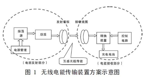 將直流電轉(zhuǎn)換成高頻交流電,然后通過沒有任何有有線連接的原、副線圈之間的互感耦合實(shí)現(xiàn)電能的無線饋送?;痉桨溉鐖D1所示。