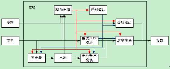 對于負載端來說,能夠直接相連的只有旁路模塊與逆變模塊,而這兩個模塊是并聯(lián)的;