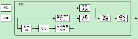 PFC/整流模塊與電池升壓模塊是并聯(lián)的,之后再與逆變模塊串聯(lián);