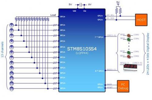 相較于機(jī)械式按鍵和電阻式觸摸按鍵,電容式觸摸按鍵不僅耐用,造價(jià)低廉,機(jī)構(gòu)簡單易于安裝,防水防污,而且還能提供如滾輪、滑動(dòng)條的功能。但是電容式觸摸按鍵也存在很多的問題,因?yàn)闆]有機(jī)械構(gòu)造,所有的檢測都是電量的微小變化,所以對各種干擾敏感得多。ST針對家電應(yīng)用特別是電磁爐應(yīng)用,推出了一個(gè)基于STM8系列8位通用微控制器平臺(tái)的電容式觸摸感應(yīng)方案,無需增加專用觸摸芯片,僅用簡單的外圍電路即可實(shí)現(xiàn)電容式觸摸感應(yīng)功能,方便客戶二次開發(fā)。