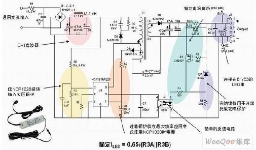 圖1:安森美半導(dǎo)體離線式第二代LED驅(qū)動(dòng)器NCP1014/1028的應(yīng)用示意圖。