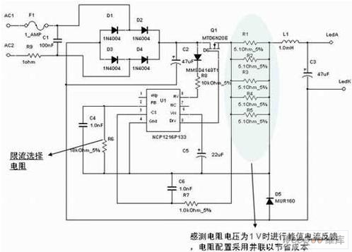 1)采用交流離線電源為L(zhǎng)ED供電