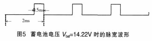 當蓄電池的電壓Vbat=14.22V 時,其脈寬波形如圖5所示。