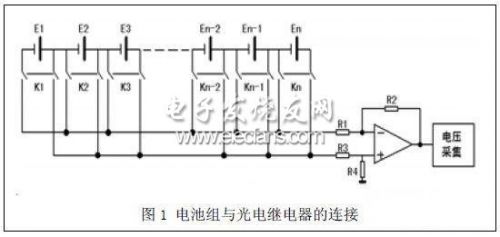 法的響應(yīng)速度快,工作壽命長(zhǎng),測(cè)量的成本相對(duì)較低,開關(guān)無觸點(diǎn),能夠起到電壓隔離的作用,若選用的光電繼電器采取PhotoMOS 技術(shù),則能達(dá)到較高的測(cè)量精度,所以光電繼電器隔離法是比較理想的單體電池電壓測(cè)量方法。本文的單體電池電壓測(cè)量方法就是基于光電繼電器隔離法實(shí)現(xiàn)的。