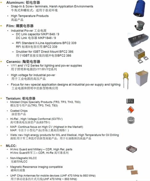 在光伏逆變器和風(fēng)電變流器中,DC-link薄膜電容可用作穩(wěn)壓濾波,預(yù)期壽命大于15年,具有更低的損耗,更好的穩(wěn)定性,而且用4~6薄膜電容 MKP1848/9就能替換掉采用60~80個(gè)電解電容器的老式設(shè)計(jì);101/102 PHR-ST非常適合高功率開關(guān)轉(zhuǎn)換器中的直流母線電容器和脈沖電源應(yīng)用中的能量?jī)?chǔ)存。除新能源領(lǐng)域外,Vishay還給我們帶來了高可靠鉭電、高可靠MLCC在軍工、逆變器、列車牽引機(jī)等一些領(lǐng)域上的應(yīng)用與選型。