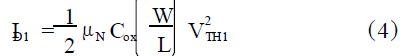 由于本電路中耗盡管閾值電壓為負(fù)值,且柵源電壓恒為0,故耗盡型管始終工作在飽和區(qū)。且其電流值恒定為: