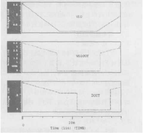 同時,為了保證充電控制管MC在過充電狀態(tài)下有效關(guān)斷,利用電平轉(zhuǎn)換電路使輸出COUT端為邏輯電路輸出信號的四級反相,從而使COUT端低電平由VSS降至V-。