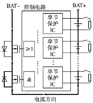 系統(tǒng)中控制電路部分單節(jié)鋰電池保護芯片的充電過電壓保護控制信號經(jīng)光耦隔離后并聯(lián)輸出,為主電路中充電開關器件的導通提供柵極電壓;如某一節(jié)或幾節(jié)鋰電池在充電過程中先進入過電壓保護狀態(tài),則由過電壓保護信號控制并聯(lián)在單節(jié)鋰電池正負極兩端的分流放電支路放電,同時將串接在充電回路中的對應單體鋰電池斷離出充電回路。