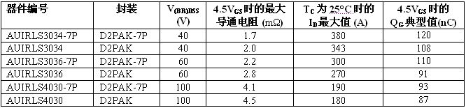 全新溝道 HEXFET 功率 MOSFET 系列采用多款表面貼裝器件 (SMD) 封裝,電壓范圍從 40V 至 200V。標(biāo)準(zhǔn)和邏輯電平柵級驅(qū)動 MOSFET 都為 IR 車用塑料封裝 MOSFET 產(chǎn)品系列設(shè)定了導(dǎo)通電阻性能新標(biāo)準(zhǔn)?;鶞?zhǔn)導(dǎo)通電阻在 40V 下最大為 1.25 毫歐,60V 下最大為2.1 毫歐,75V 下為 2.6 毫歐,100V 下為 4.0 毫歐。在 D2Pak-7P 封裝中許多器件的最大額定電流達(dá) 240A。
