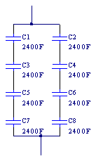 超級電容器組的等效電容為: