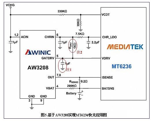 AW3208不但可以支持國內(nèi)充電器實現(xiàn)快速充電,同時由于AW3208集成了降壓OVP的功能,也可以支持海外諾基亞充電器輸出電壓較高時的快充充電。高電壓帶來的必然是高功耗,為了確保AW3208能夠?qū)崿F(xiàn)最大且最可靠的充電電流,請確保AW3208的散熱片是接到PCB的主地,且最好是把AW3208放置在板子中間,方便芯片散熱。