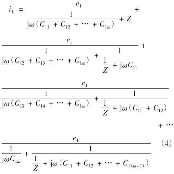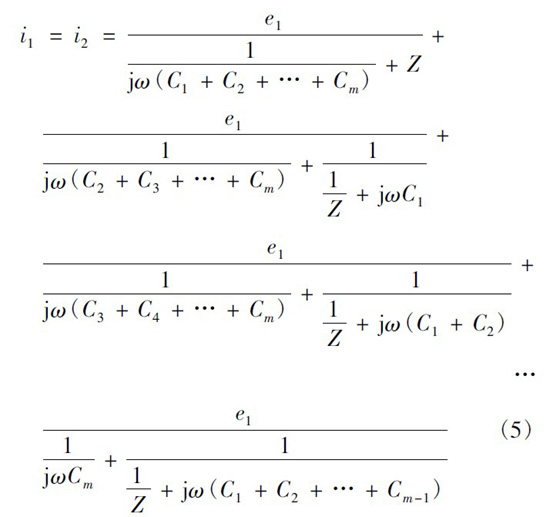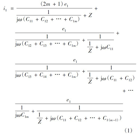 以圖3 所示的變壓器為例,最上層一次繞組與二次繞組間的寄生電容最大,是產(chǎn)生共模傳導(dǎo)EMI 的主要原因,故以下主要分析這兩層間分布電容對共模傳導(dǎo)EMI 的影響,忽略變壓器其他繞組對共模傳導(dǎo)EMI 的影響。