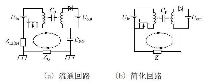 圖4 變壓器中共模傳導(dǎo)EMI 的流通回路