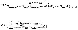 為在[t1-t2]和[t3-t4]時(shí)序期間符合斷續(xù)模式,圖5所示的時(shí)間參數(shù)td1和td2應(yīng)總是正值。根據(jù)典型連續(xù)導(dǎo)通模式(CCM)功率因數(shù)校正規(guī)則和tD1_ON 和tD2_ON 表達(dá)式,確定變壓比條件m1 和 m2 不是難事。