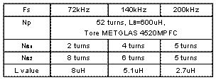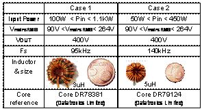 表2:用于不同類型功率因數(shù)校正器的L線圈的電感和尺寸[page]