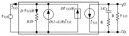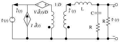 根據(jù)等式(5)和等式(6),即可得到圖7所示的用理想變壓器表示非隔離負(fù)電壓Buck開關(guān)電源的CCM小信號模型。