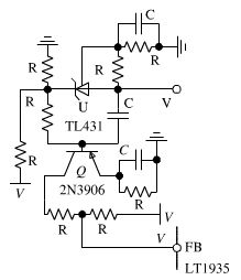 反饋控制回路采用了峰值電流控制。相比傳統(tǒng)的電壓控制,峰值電流控制一方面能很好的改善電源的動態(tài)響應(yīng),另一方面還能實現(xiàn)快速的過電流保護(hù),很大程度上提高了系統(tǒng)的可靠性。由于采用了電源控制器LT1935,其內(nèi)部集成了峰值電路控制電路和斜坡補(bǔ)償電路,非隔離負(fù)電壓DC/DC開關(guān)電源反饋回路設(shè)計即轉(zhuǎn)換為補(bǔ)償網(wǎng)絡(luò)設(shè)計,進(jìn)而大大簡化了反饋回路的設(shè)計。