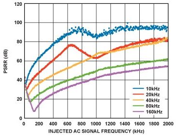 在PLL系統(tǒng)中,較高的VCO推壓意味著VCO電源噪聲的增加倍數(shù)更大。為盡可能降低對VCO相位噪聲的影響,需要低噪聲電源。