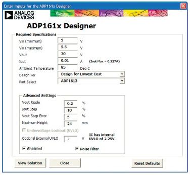 圖8.ADP1613升壓轉(zhuǎn)換器EXCEL設計工具