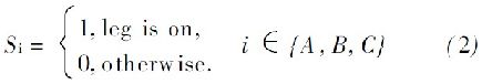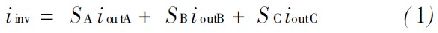 式中, SA , S B 和SC 是交換功能的交換機(jī)頂端的三個逆變器的開關(guān), 如下: