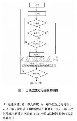 要實(shí)現(xiàn)分段恒流充電的自動控制,階段恒流充電終止判斷參數(shù)可選擇充電時間、電池溫度和電池電壓等。大量的調(diào)查分析和電池充電試驗(yàn)結(jié)果表明,單參數(shù)控制方法難以實(shí)現(xiàn)理想的分段恒流充電控制。